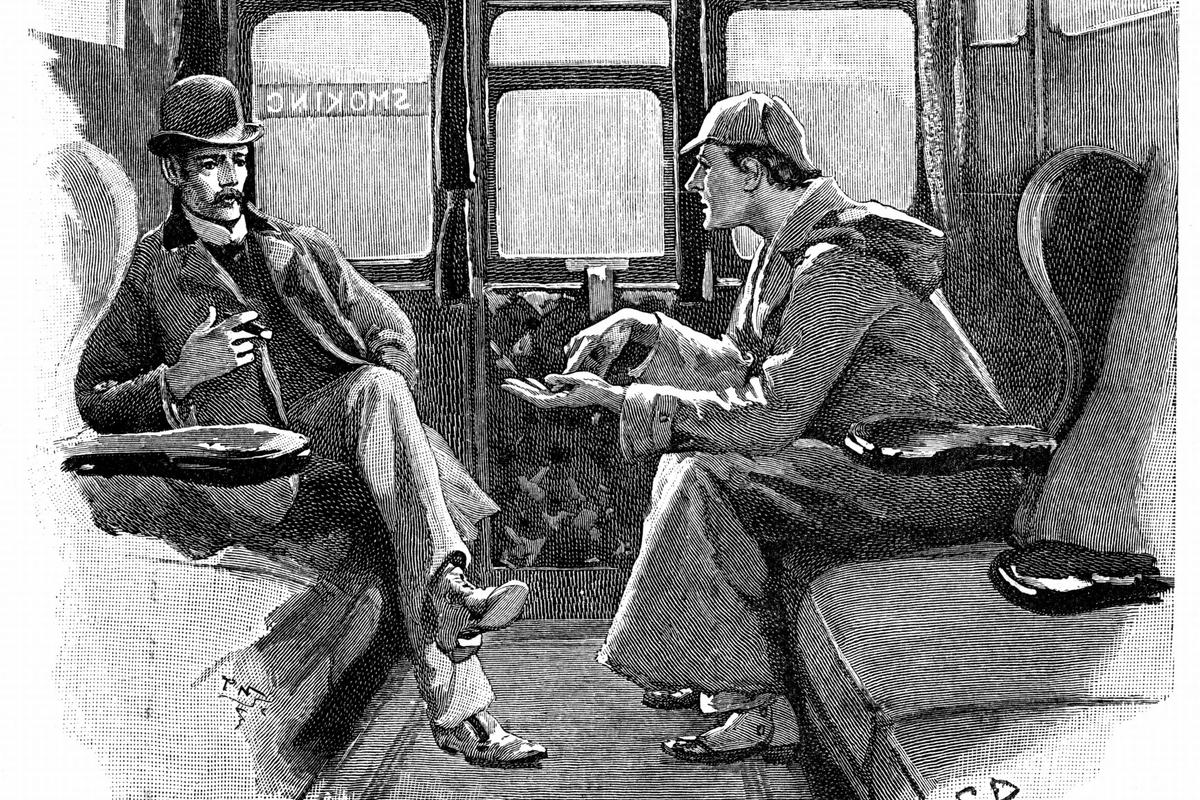 « L’Aventure de Silver Blaze ». Sherlock Holmes et le Dr Watson en train pour le Devon afin d’enquêter sur un meurtre et la disparition d’un célèbre cheval de course. Histoire d’Arthur Conan Doyle publiée dans « The Strand Magazine », Londres, 1892, ANN RONAN PICTURE LIBRARY / PHOTO12 VIA AFP